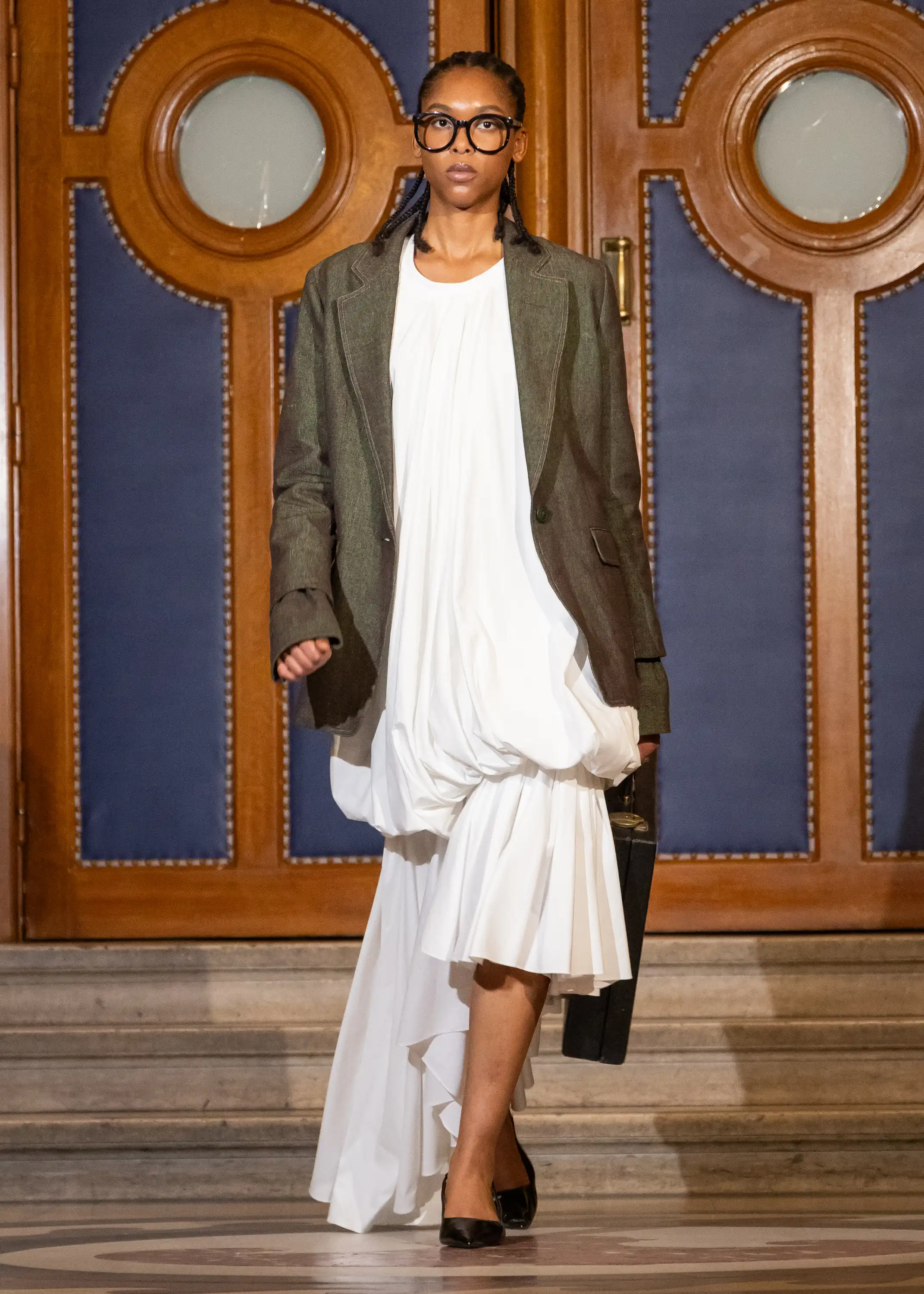 L-R: Boyarovskaya FW26, courtesy of Michael Foust. Genny FW26, Jitrois FW26, courtesy of the brand.