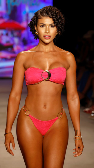 The "La Vida Miami" collection showcased a stunning variety of swimwear, from bikinis to elegant one-pieces with daring plunging necklines and uniquely designed cutouts. The show also included a range of art deco-inspired pink and aqua designs and elegant cover-ups that paid homage to the city’s architectural beauty. Notably, Jessica Vestal, star of 'Love Is Blind', graced the runway, modeling several exquisite looks, adding star power and allure to the event.
